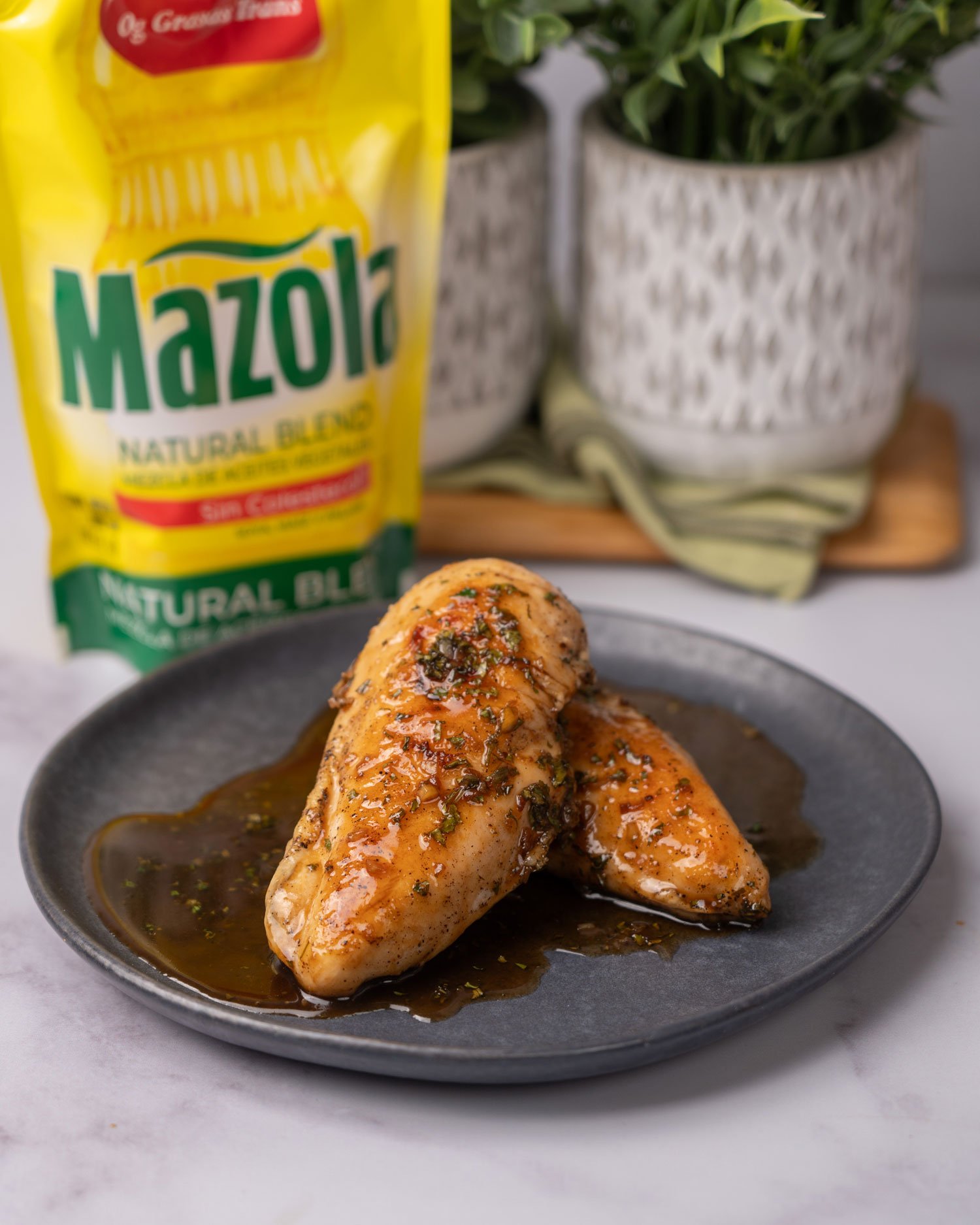 - Sazona las pechugas con sal y pimienta. En un sartén grande, calienta el aceite y dora las pechugas por ambos lados a fuego medio-alto hasta que estén cocidas (unos 4–5 minutos por lado, dependiendo del grosor). Retiralas del sartén y reserva.